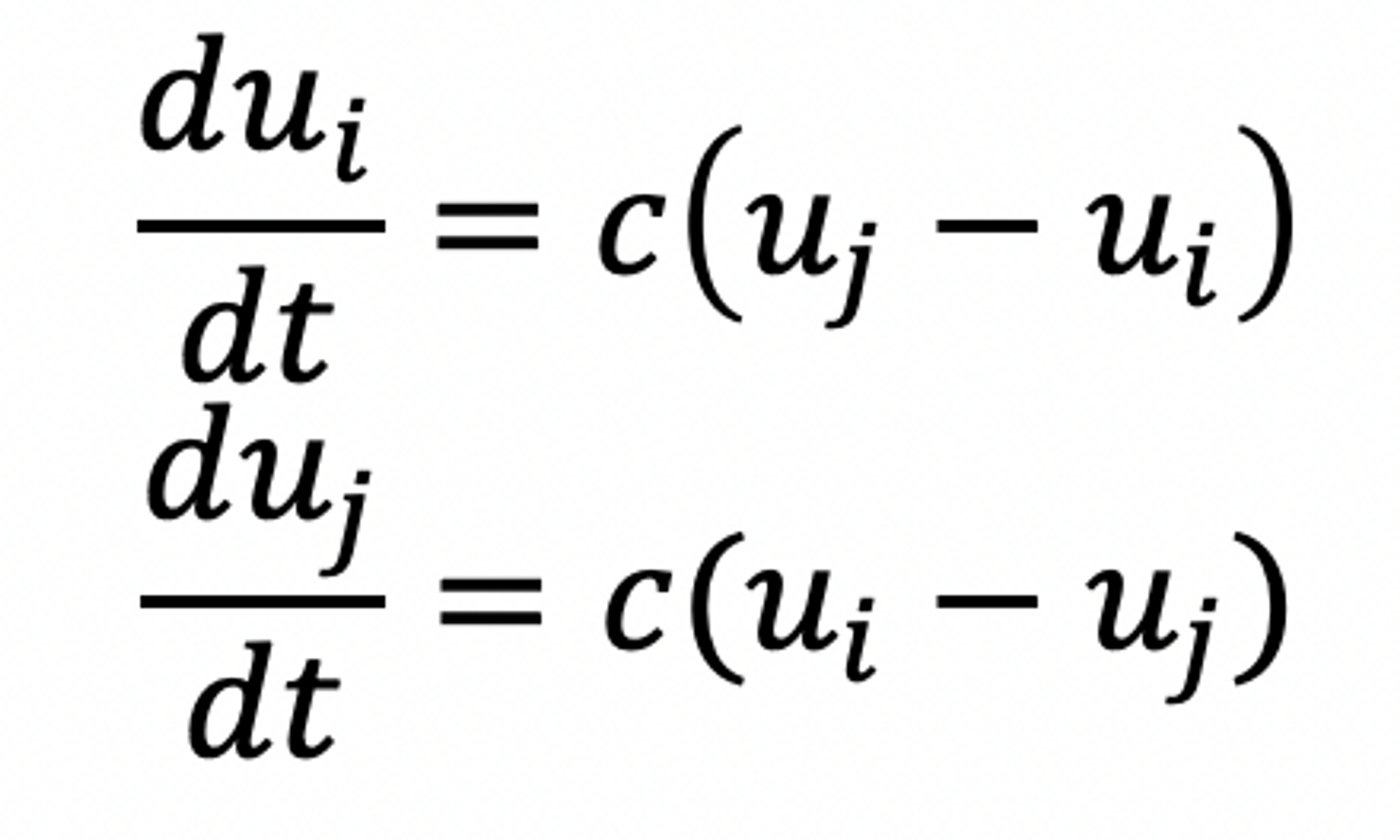 - $c(u_j-u_i)dt$ : time period dt동안 j → i 로 가는 substance의 양