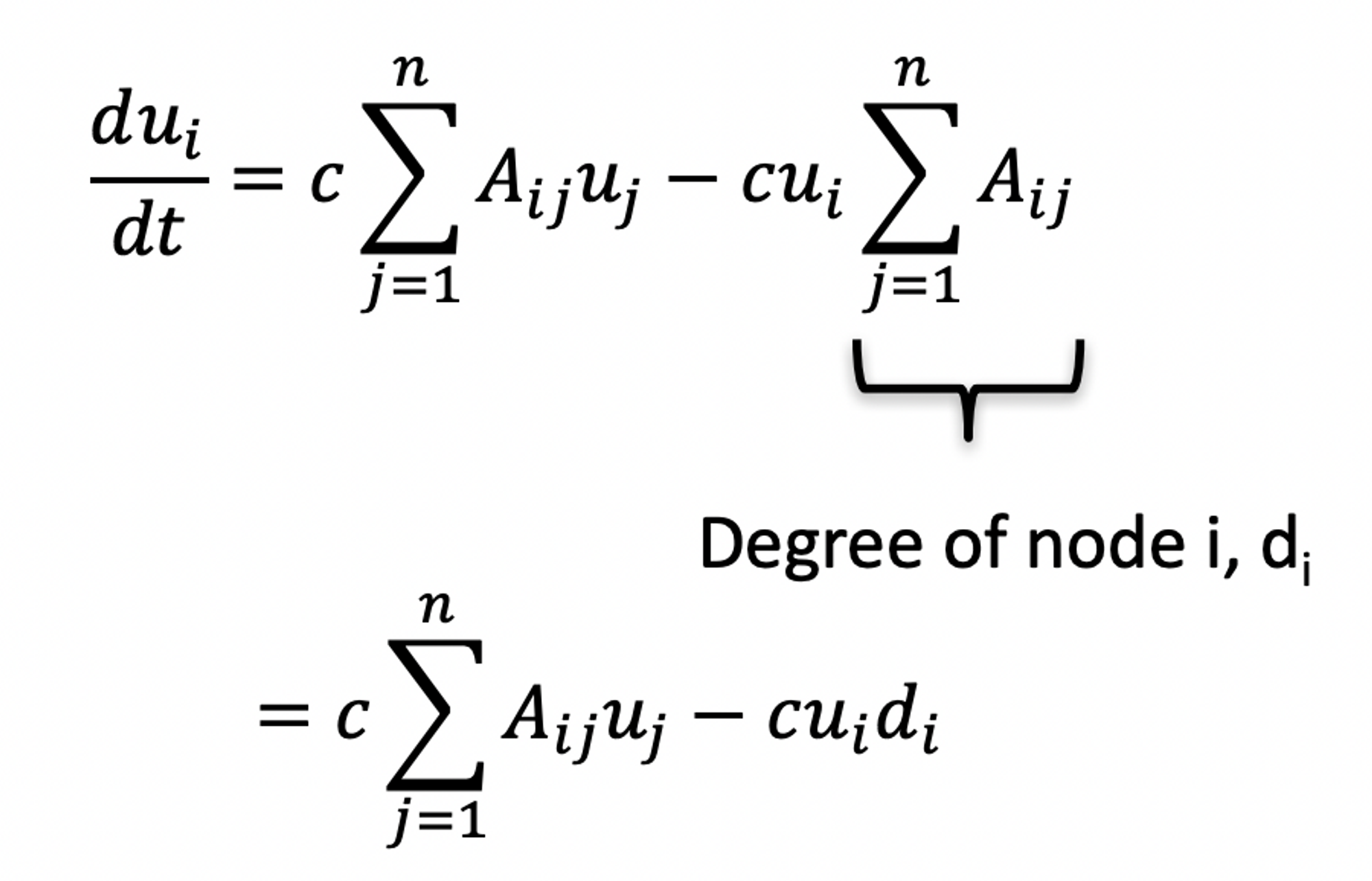 - $c(u_i-u_j)dt$ : time period dt동안 i → j 로 가는 substance의 양
