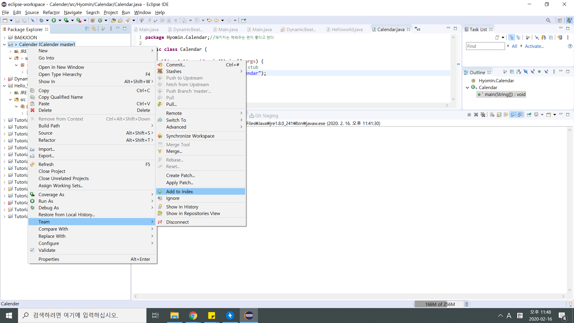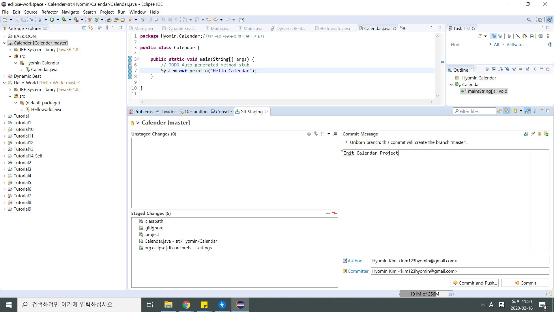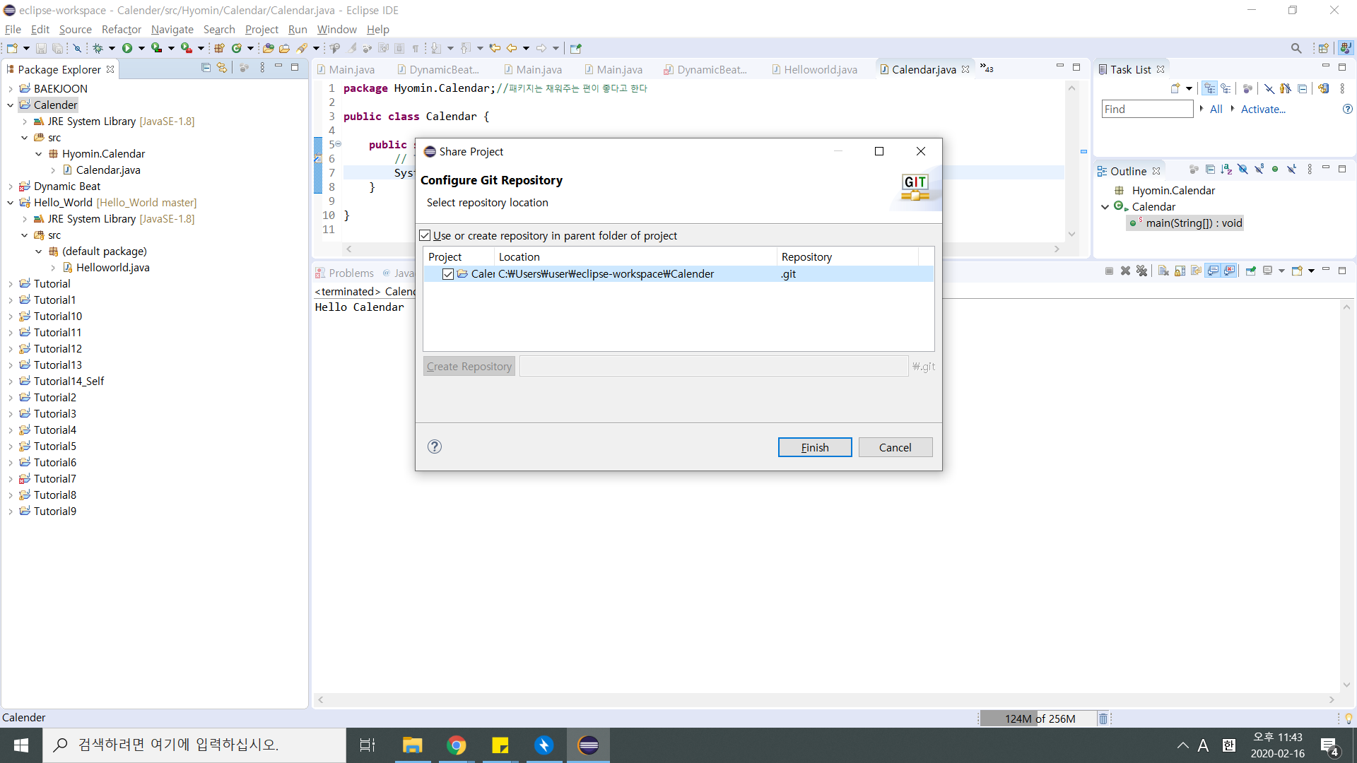C:\Users\user\eclipse-workspace\Calender 위치에 .gitignore이 생겼으면 git project로 관리하겠다는 뜻으로 된 것이다!