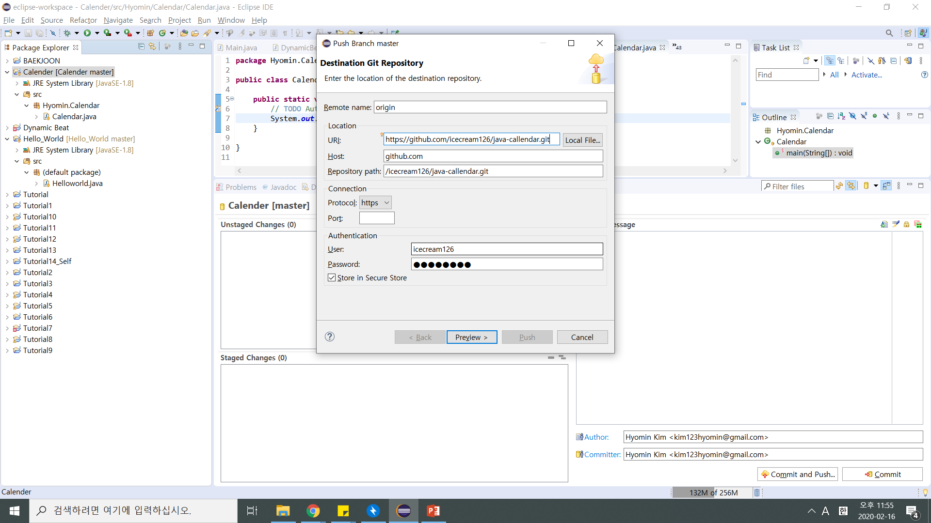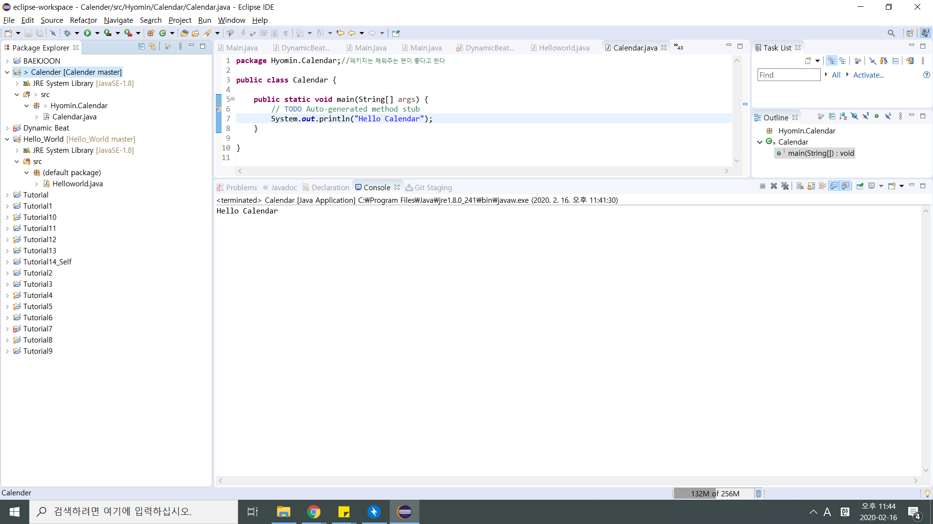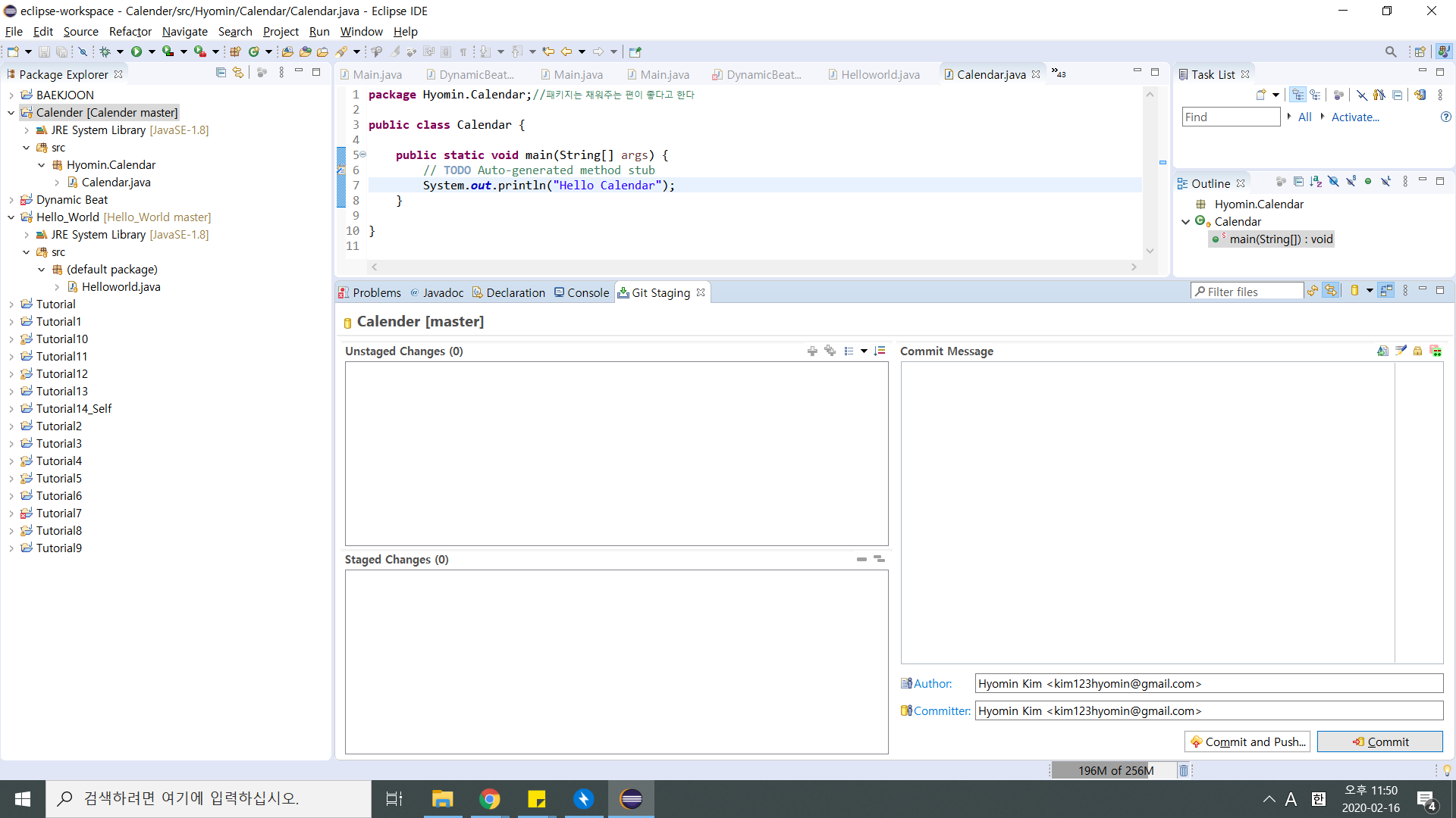 C:\Users\user\eclipse-workspace\Calender 위치에 .gitignore이 생겼으면 git project로 관리하겠다는 뜻으로 된 것이다!