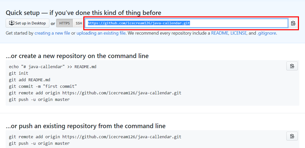 github 페이지로 가서 URL 복사 후